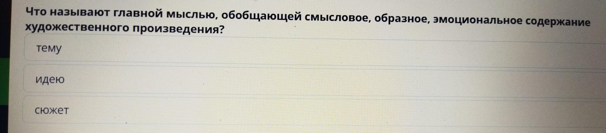 что называют главной мыслью,обобщающей смысловое,образное,эмоциональное содержание художественного произведения?