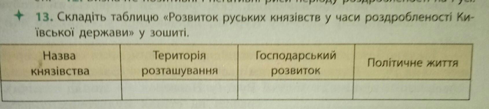 Заповніть табличку в робочому зошиті окремо про Київське, Чернігівське, Переяславське, Волинське, Галецьке