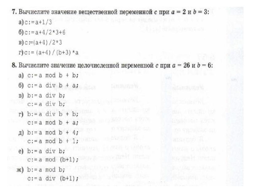 Теперь, чтобы посчитать вторую строку задачи, вместо b надо ставить не 6, а 4, потому что в первой строке мы посчитали и присвоили b : = 4. Всегда так надо делать. (Например, если в начале задачи написано, что х : = 1, то в самый первый раз так и надо считать. Но если потом в каком-то примере х станет 3, то теперь это и будет новое значение, с которым надо работать. Запомни правило: какое значение последнее, то и использовать.