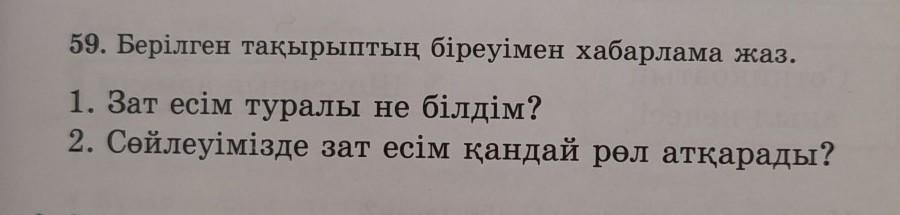 Қазақ тілінде зат атауларына көп нәрсе жоқ шығар сірә. Зат есім дегеніміз -заттың атауын білдіретін сөз табы. Мысалға алма алып берші деген сөйлемде алма(не ?) зат есім болып тұр .Ал біздің тілімізде нешнеше түрлі зат, жер-су атаулары, адам есімдері кездеседі. Біз заттың атын атамай оны біле алмаймыз .Заттың аты арқылы сипаттай аламыз.