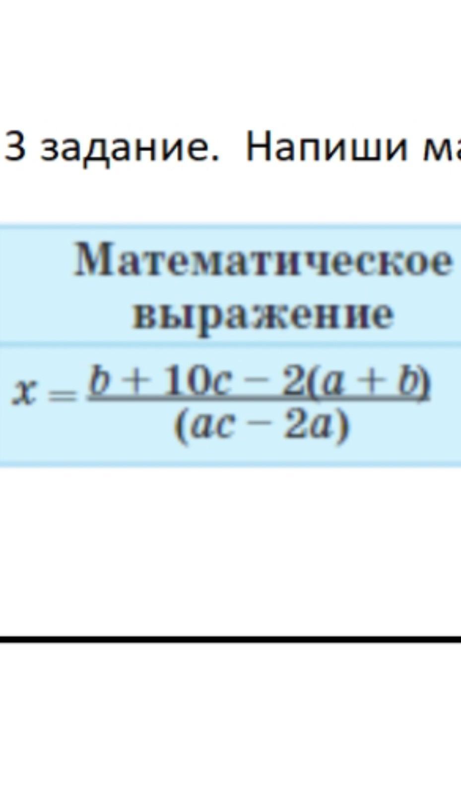 x = (b + 10 * c - 2 * (a + b)) / (a * c - 2 * a)