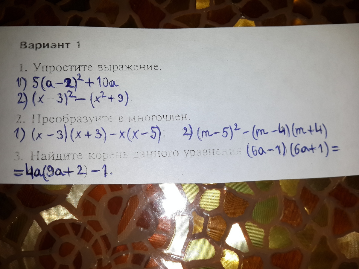 1. 1) 5(a^2-4a+4)+10a=5a^2-20a+20+10a=5a^2-10a+20=5(a^2-2a+4) (вот там где я вынесла пять за скобки наверно можно не писать)