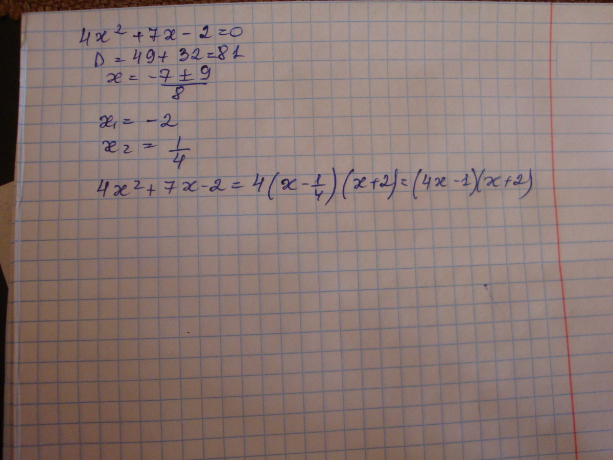 4x²+7x-2=4(x+2)(x-1/4)=(x+2)(4x-1)