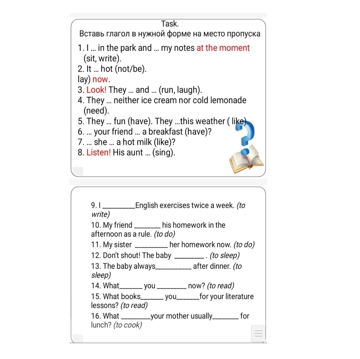 1.I am siting in the park and writing my notes at the moment.