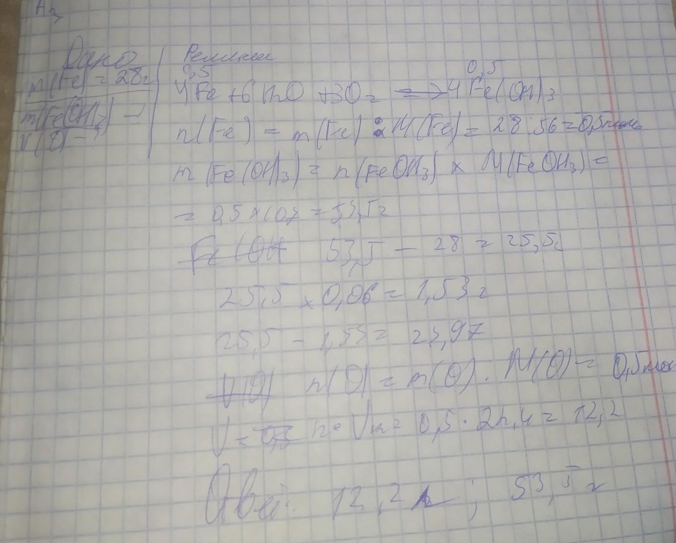 Ответ: объем кислорода:12,2 литра; масса ржавчины:53,5 грамм