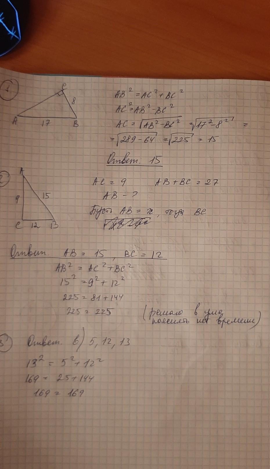 1) АС^2= АВ^2-СВ^2=17^2-8^2=289-64=225