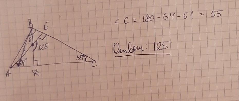Определи величину угла ∠AOB, если градусная мера угла ∠A = 64°, ∠B = 61°.