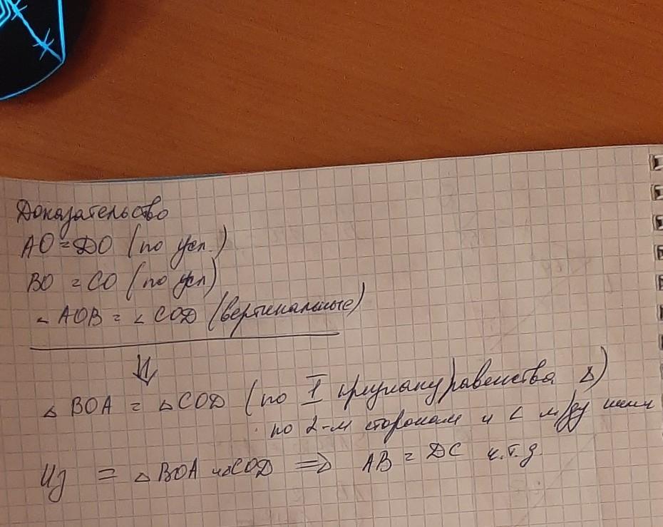 доказывает через равенство треугольников. смотрите пояснение. ужачи