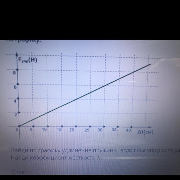 Найди по графику удлинение пружины, если сила упругости равна 8Н.