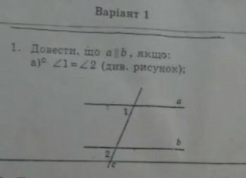 Ответ: угол 1 и угол 2 - односторонние и равны, с - секущая => по признаку парраллельности двух прямых а параллельна б