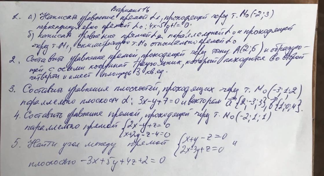 4)Составить уравнение прямой проходящей череэ точки М0( тоже значения напишешь с фото)параллельно прямой ( спишешь с фото)