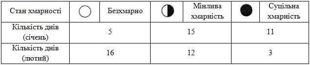 2. Користуючись даними таблиці, побудуйте стовпчикову діаграму хмарності:файл 4,5