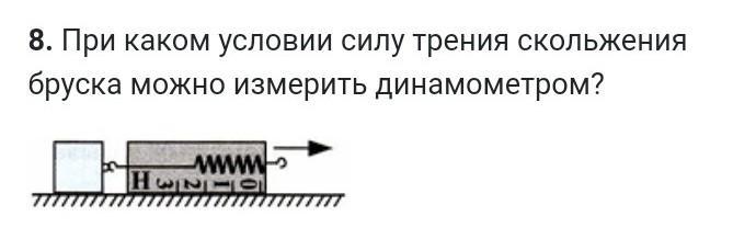 8. При каком условии силу трения скольжения бруска можно измерить динамометром?