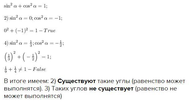 В итоге имеем: 2) Существуют такие углы (равенство может выполнятся). 3) Таких углов не существует (равенство не может выполнятся)
