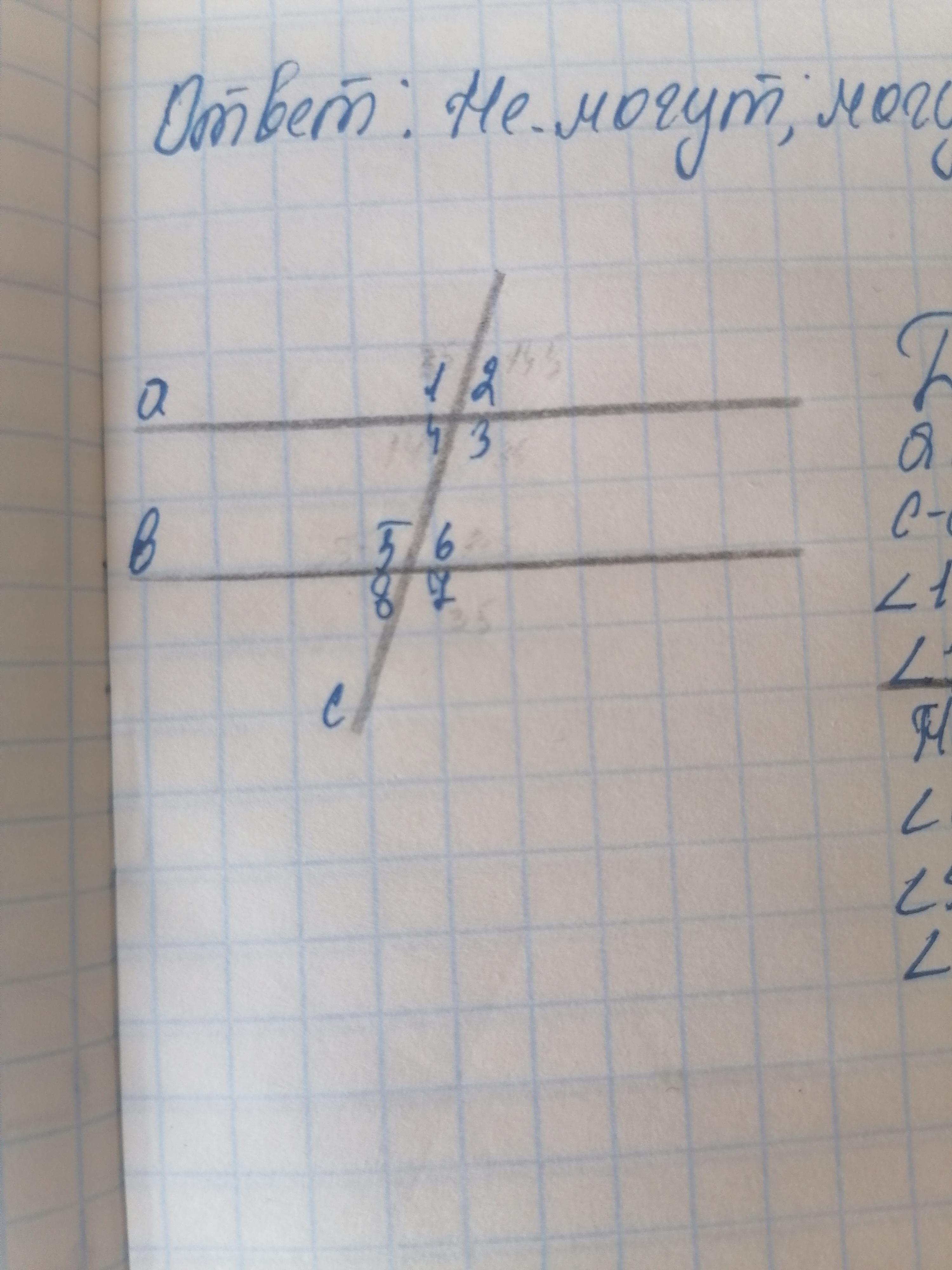 Тогда угол 1, как смежный с ним, равен 180-35=145 градусов, остальное доказывается так же, как я расписал выше, все углы будут либо 35, либо 135 градусов, это основные свойства.