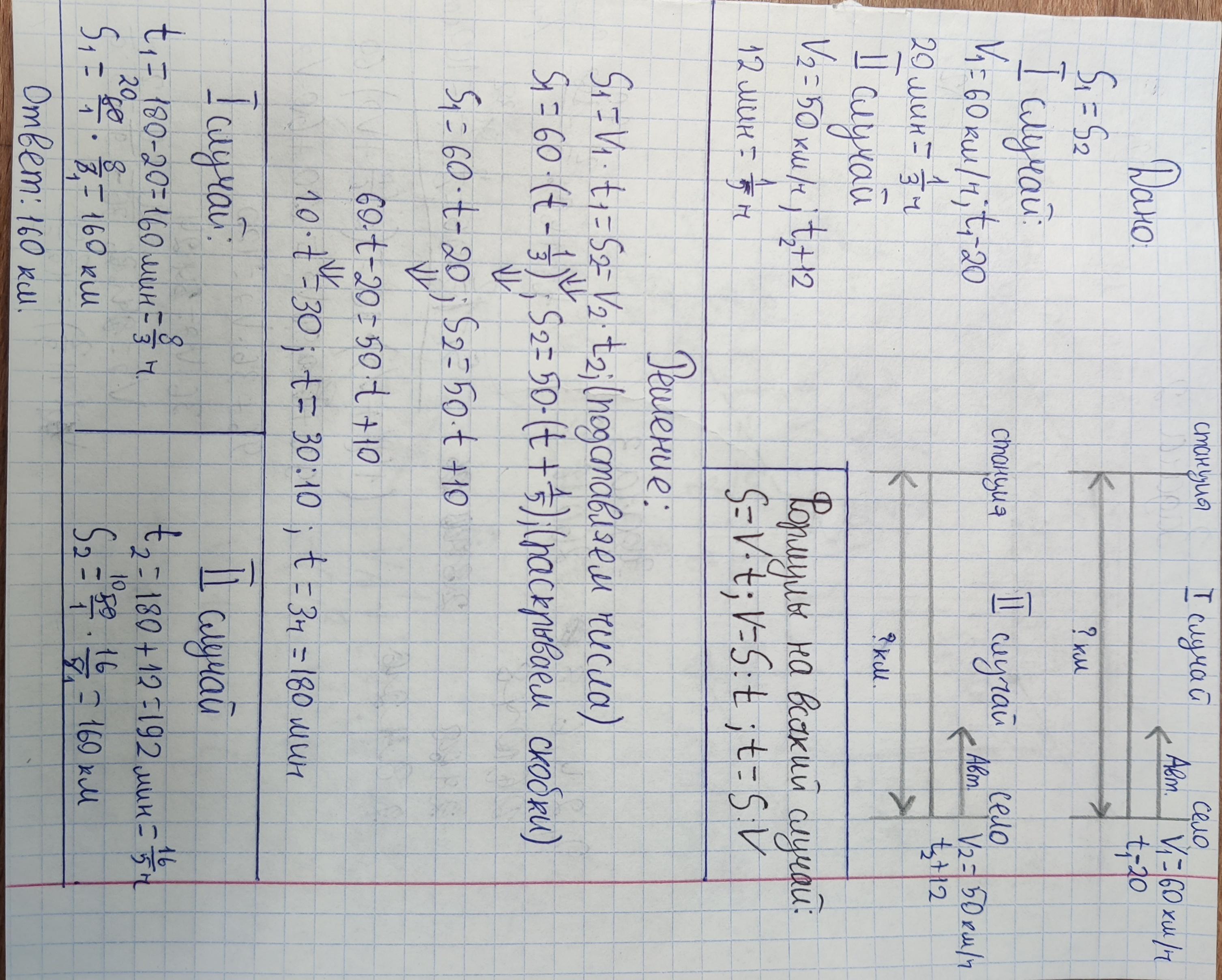 160 км = 160 км расстояние между селом и станцией (с разной скоростью и разное время автобус прошёл одно и тоже расстояние)