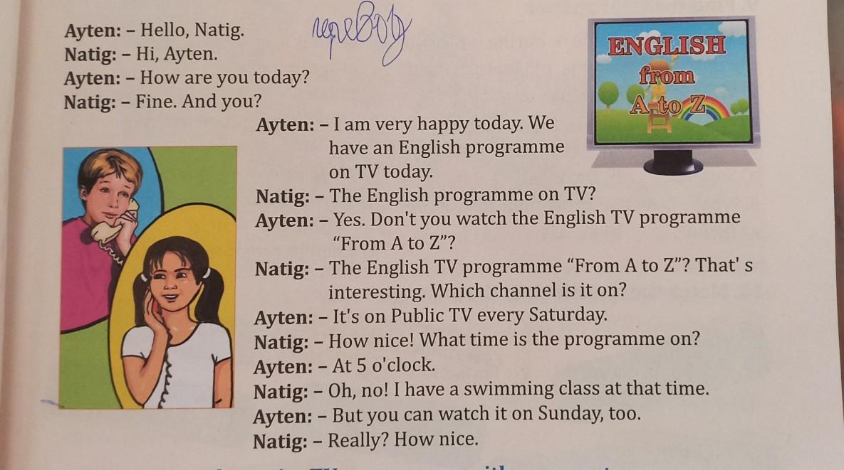 Я очень счастлив сегодня.Сегодня у нас английская программа по телевидению.