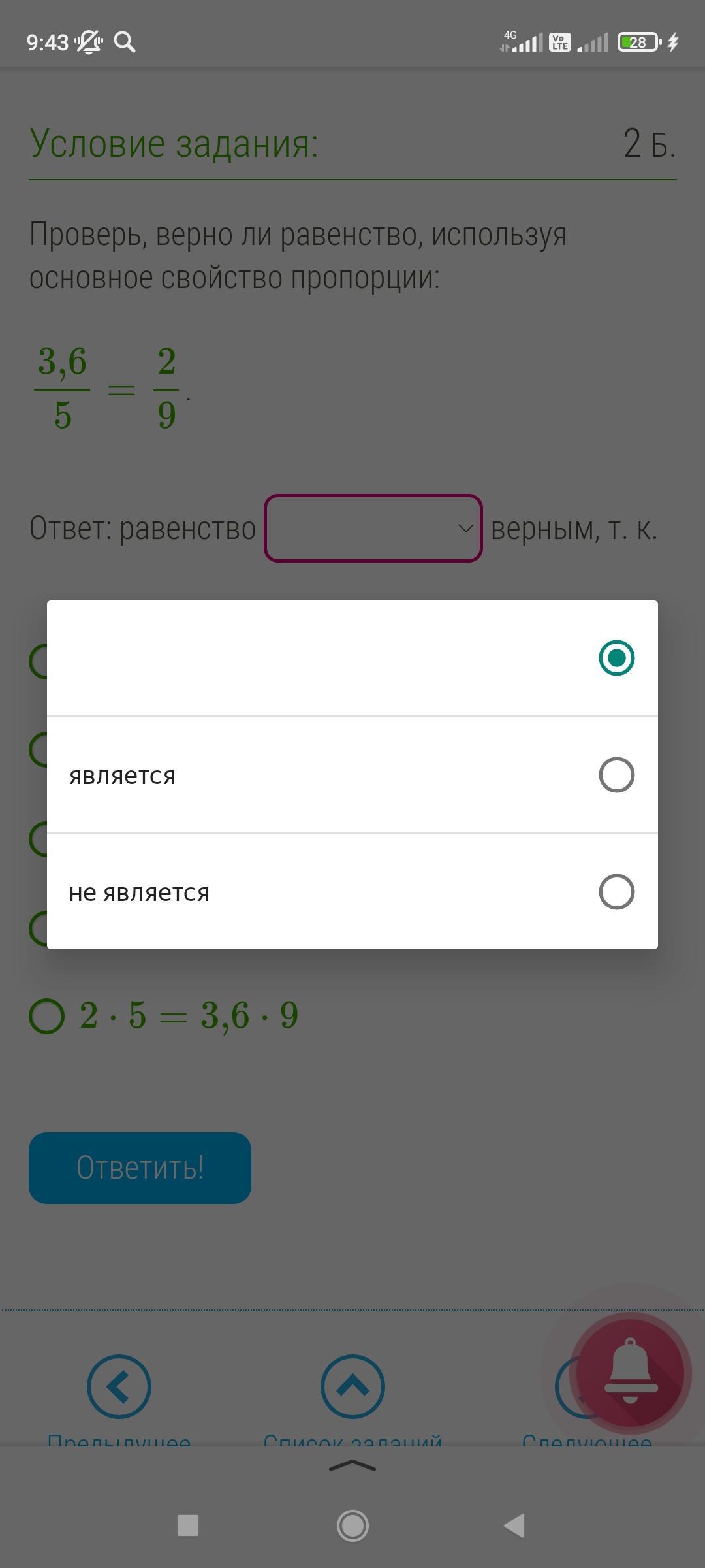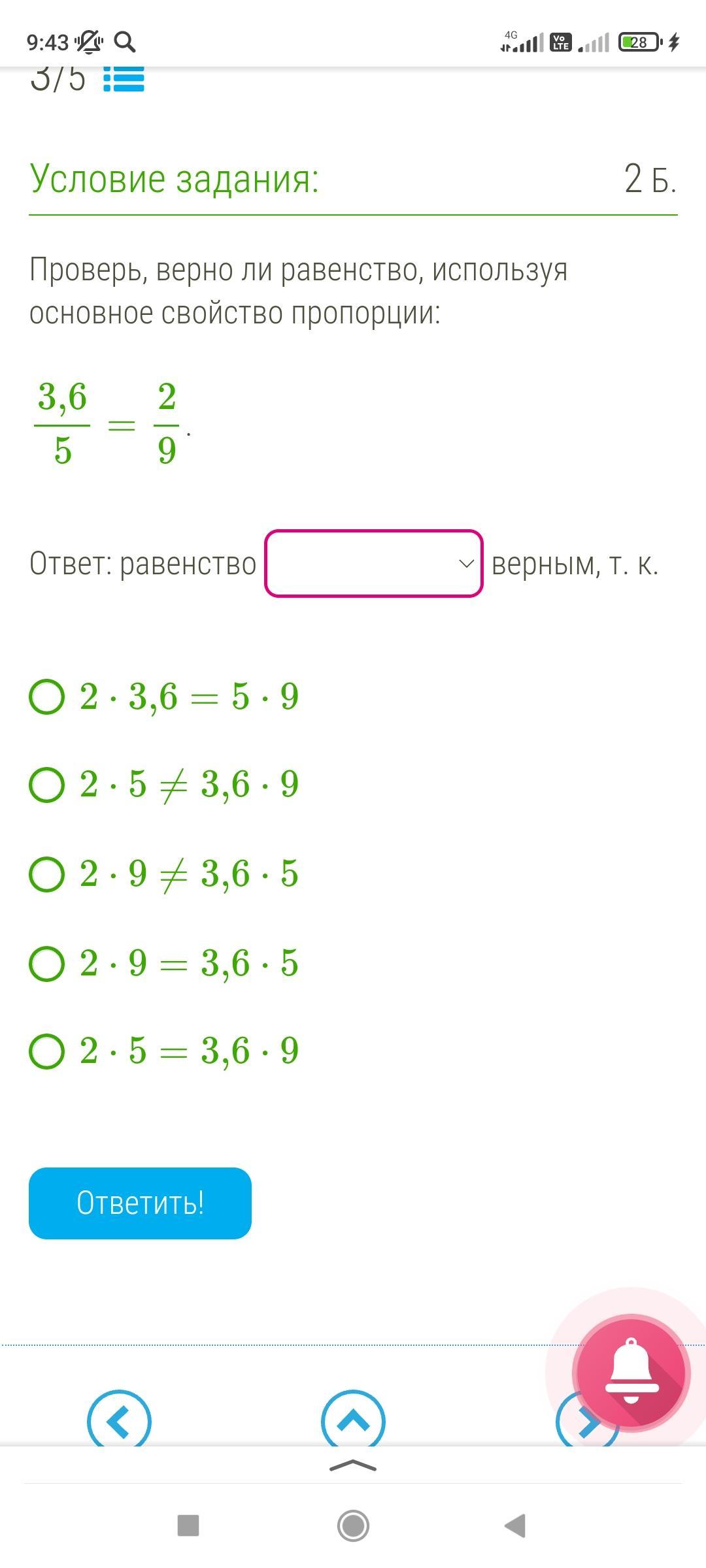 Равенство является не верным , т.к в условии