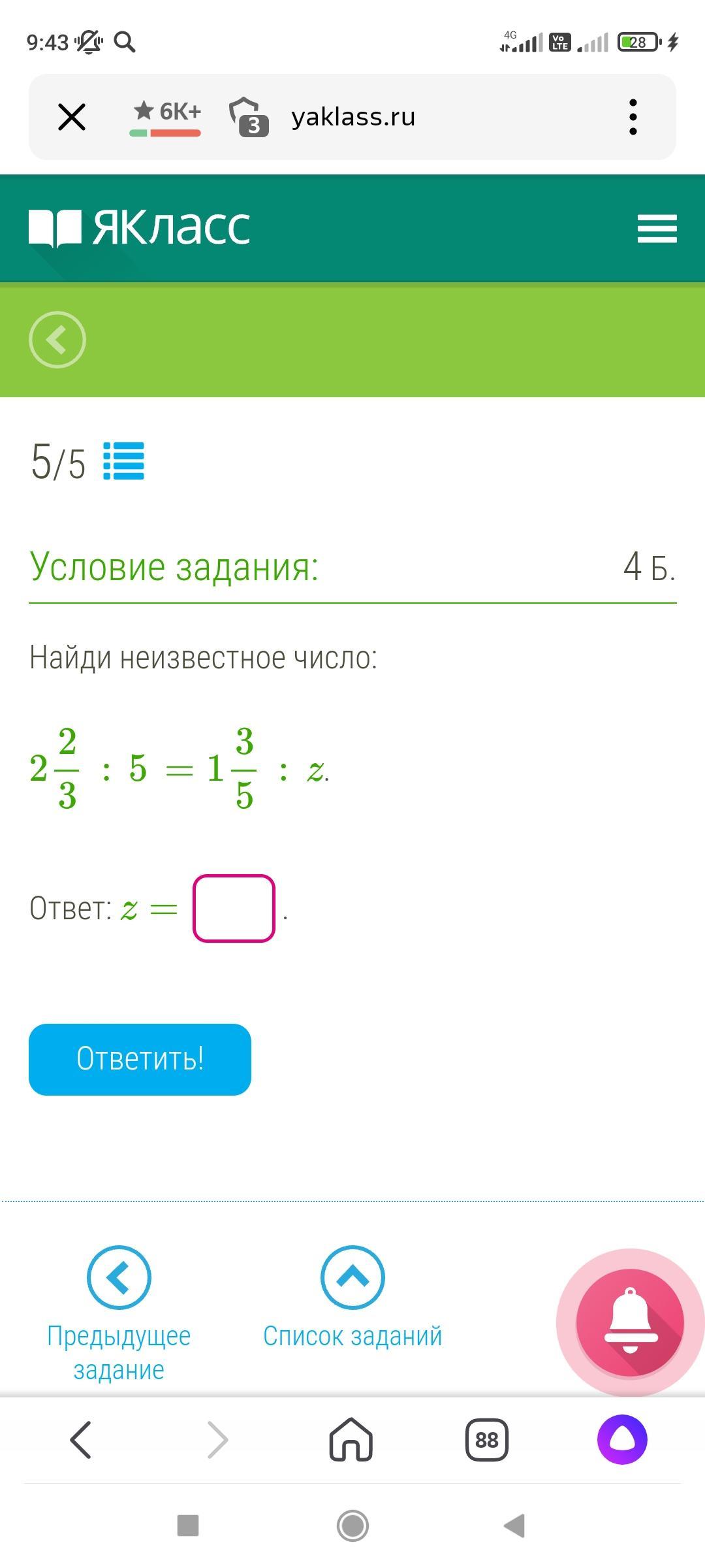 Ответ : z=3