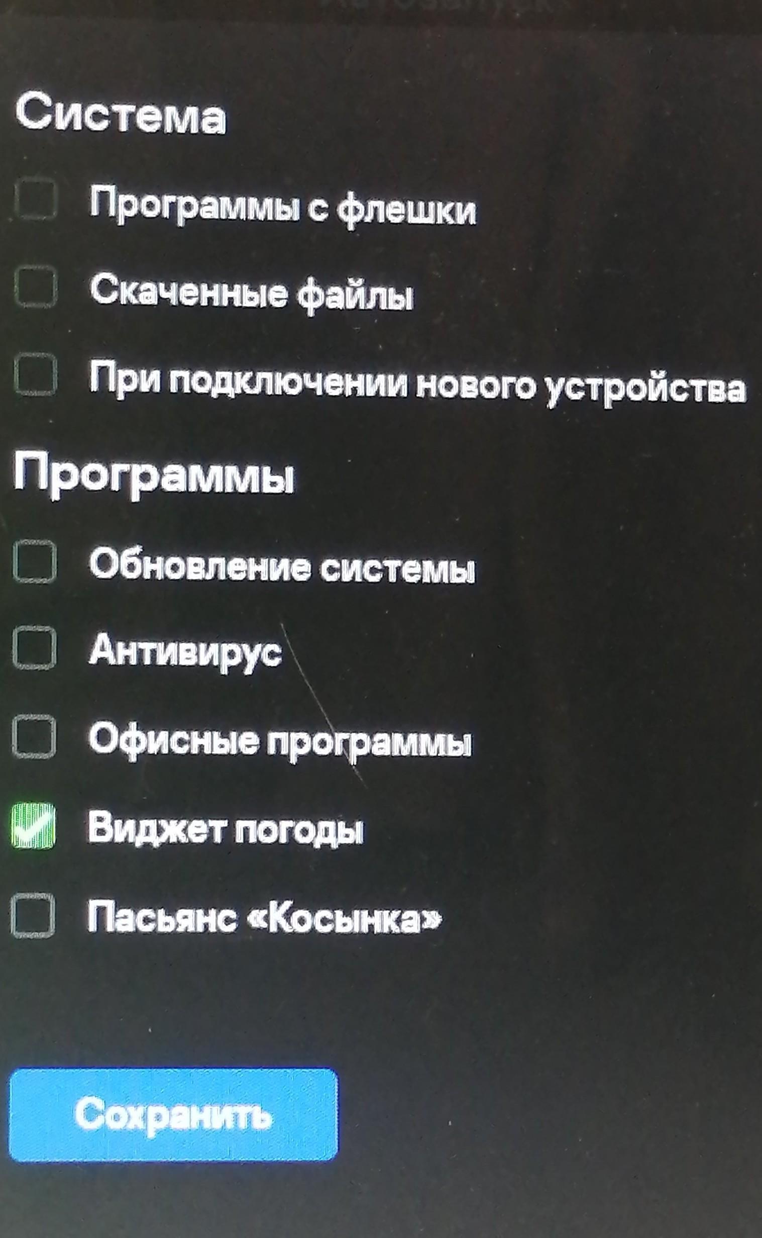 Правильные ответы: Виджет погоды, антивирус, офисные программы, обновление системы