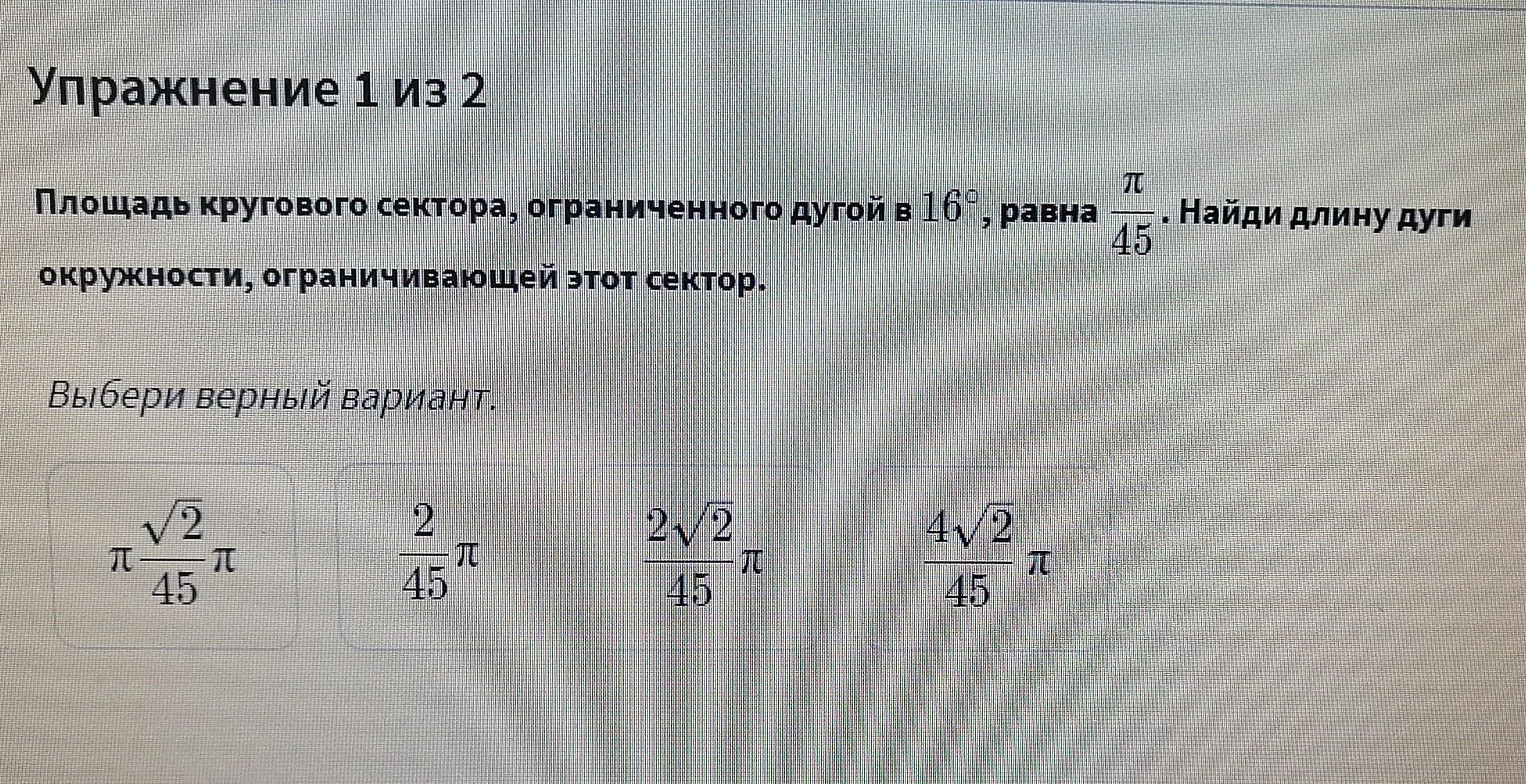 Cдуги=С*2/45=2π√2/45