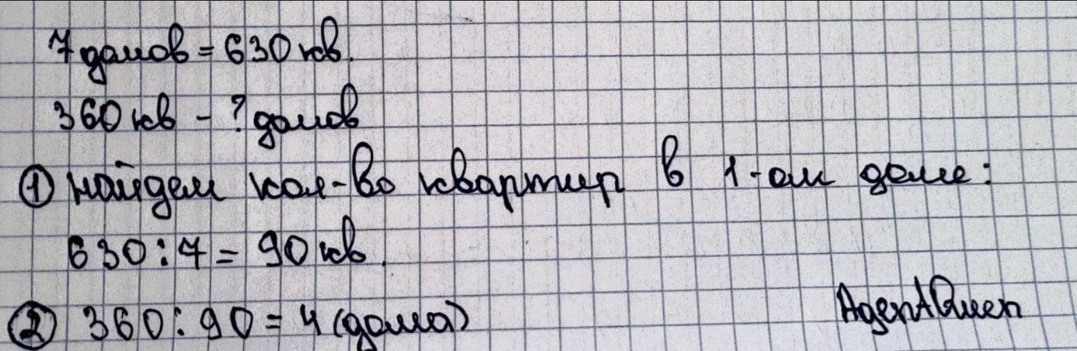 2) Узнаем сколько домов потребуется для 360 квартир, зная ,что в одном доме 90 квартир.