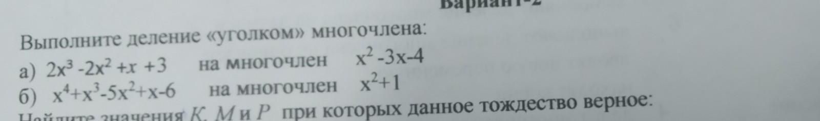 б) х⁴+х³-5х²+х-6 на многочлен х²+1.