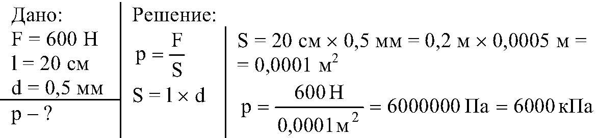 Сила,с которой человек нажимает на лопату,равна 1000 Н.Какое давление оказывает лопата на почву,если ширина её лезвия 20 см,а толщина режущего края 0,2 мм?