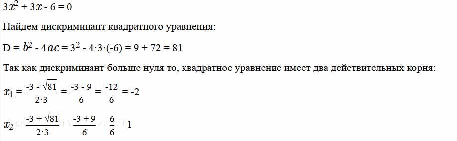 D= 3^2-4×3×(-6)= 9+72=81>0, 2 корня