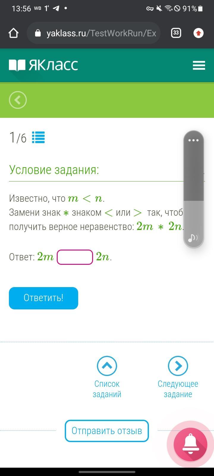 если сказано что m>n,то следовательно логично что 2×n>2×m