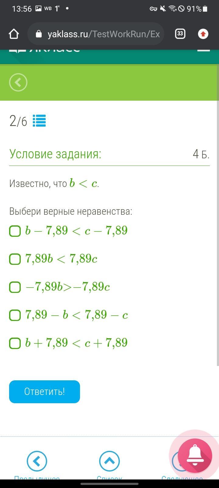 7,89+c >7,89+b-неравенство верное,т.к c>b