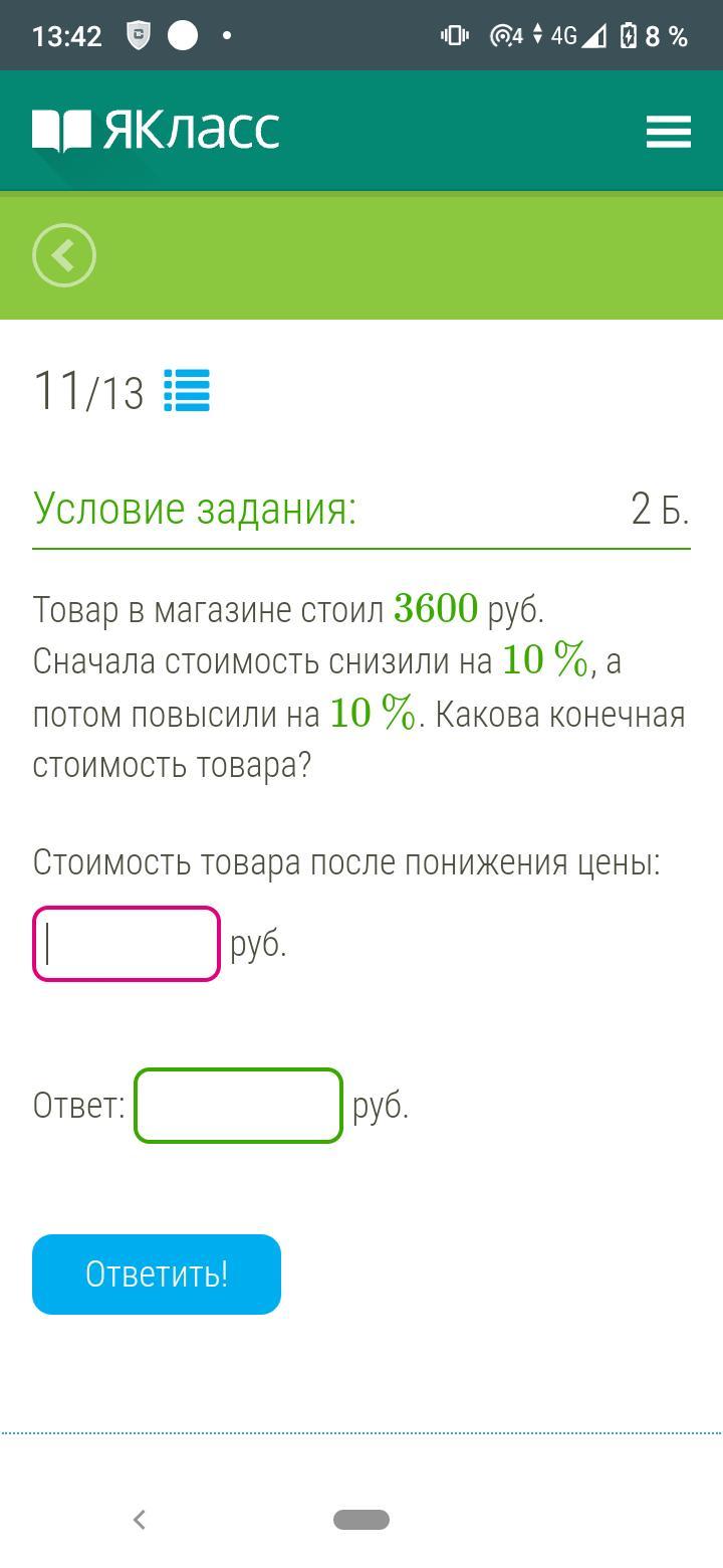 36*10=360р на столько рублей понизили первоначальную цену
