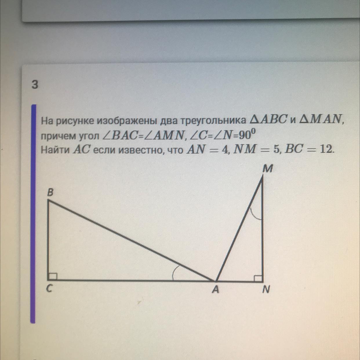 Исходных данных нам достаточно, чтобы утверждать, что треугольники ABC и AMN подобны по 2 углам