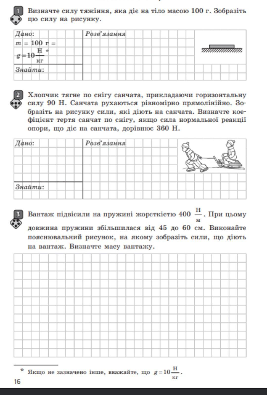 Зобразити силу на малюнку: поставити крапку по середині тіла і з неї стрілка вниз.