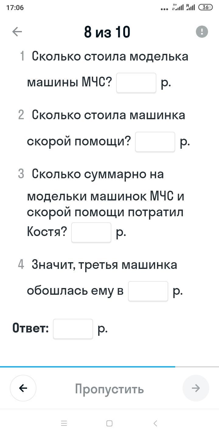2) 75 * 4 = 300 (руб) - стоила модель Скорой
