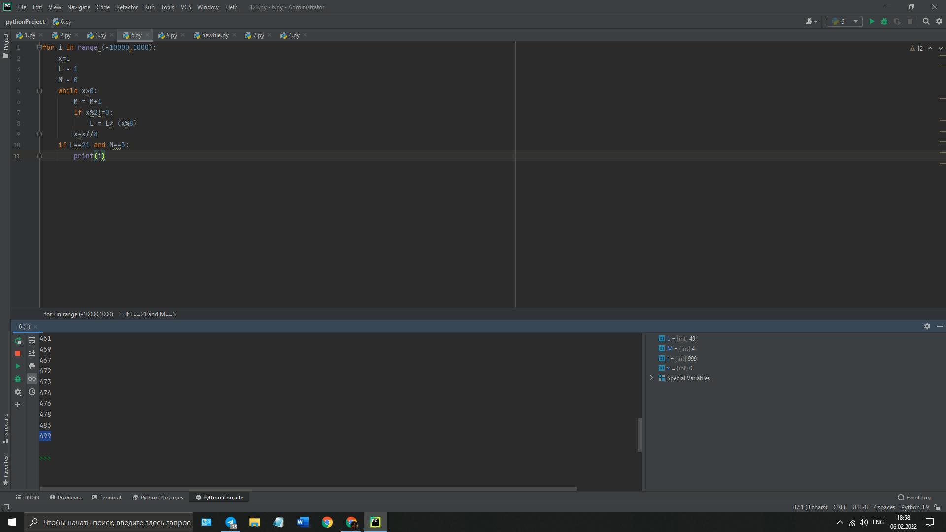 - а еще ты строку x=x//8 зачем-то кинул в if