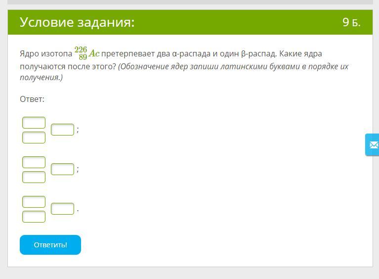 ядро Ac претерпевает два альфа распада и один бета распад. Какие ядра получаются после этого?