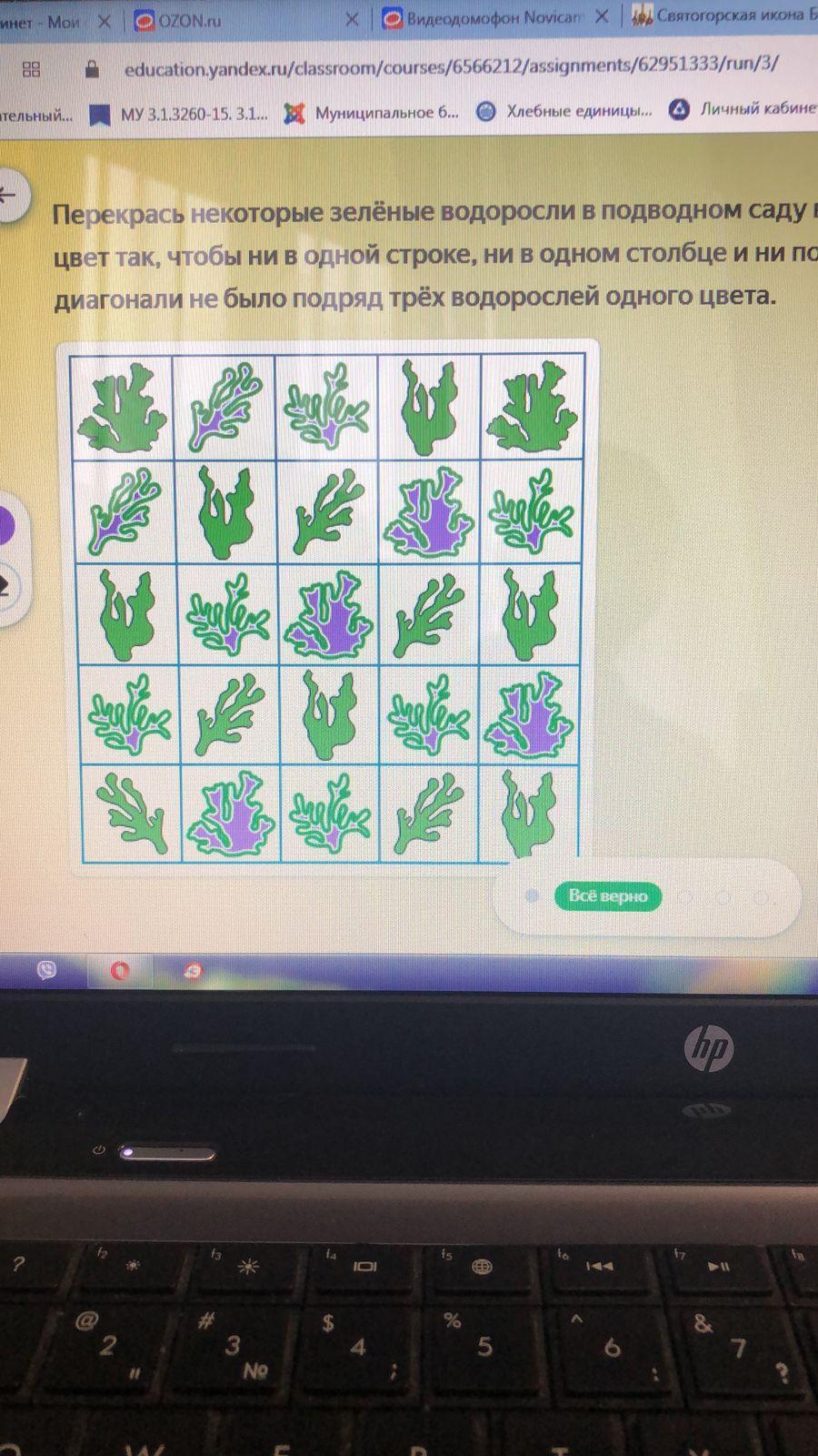 Перекрась некоторые зелёные водоросли в подводном саду в фиолетовый