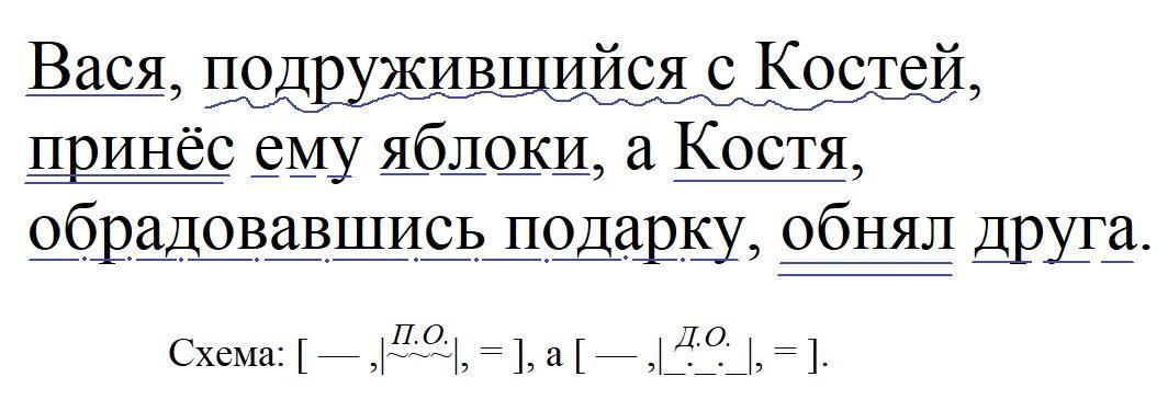 Характеристика: повествовательное, невосклицательное, сложносочиненное предложение с отношениями сопоставления между частями; первая часть простая, двусоставная, полная, распространенная, осложнена обособленным определением, выраженным причастным оборотом; вторая часть простая, двусоставная, полная, распространенная, осложнена обособленным обстоятельством, выраженным деепричастным оборотом