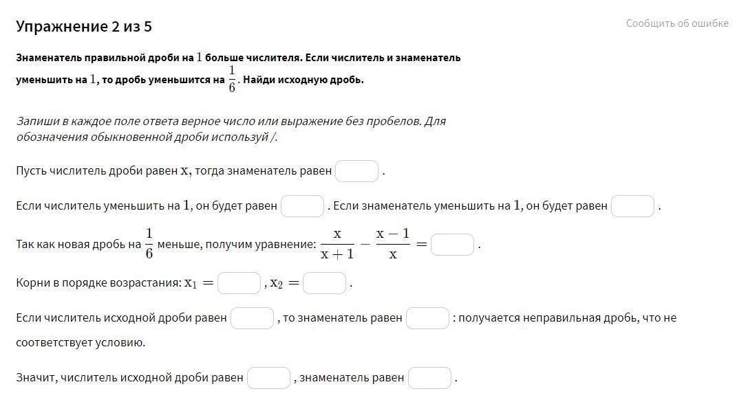 Если числитель исходной дроби равен __, То знаменатель равен __: получается неправильная дробь, что не соответствует условию.