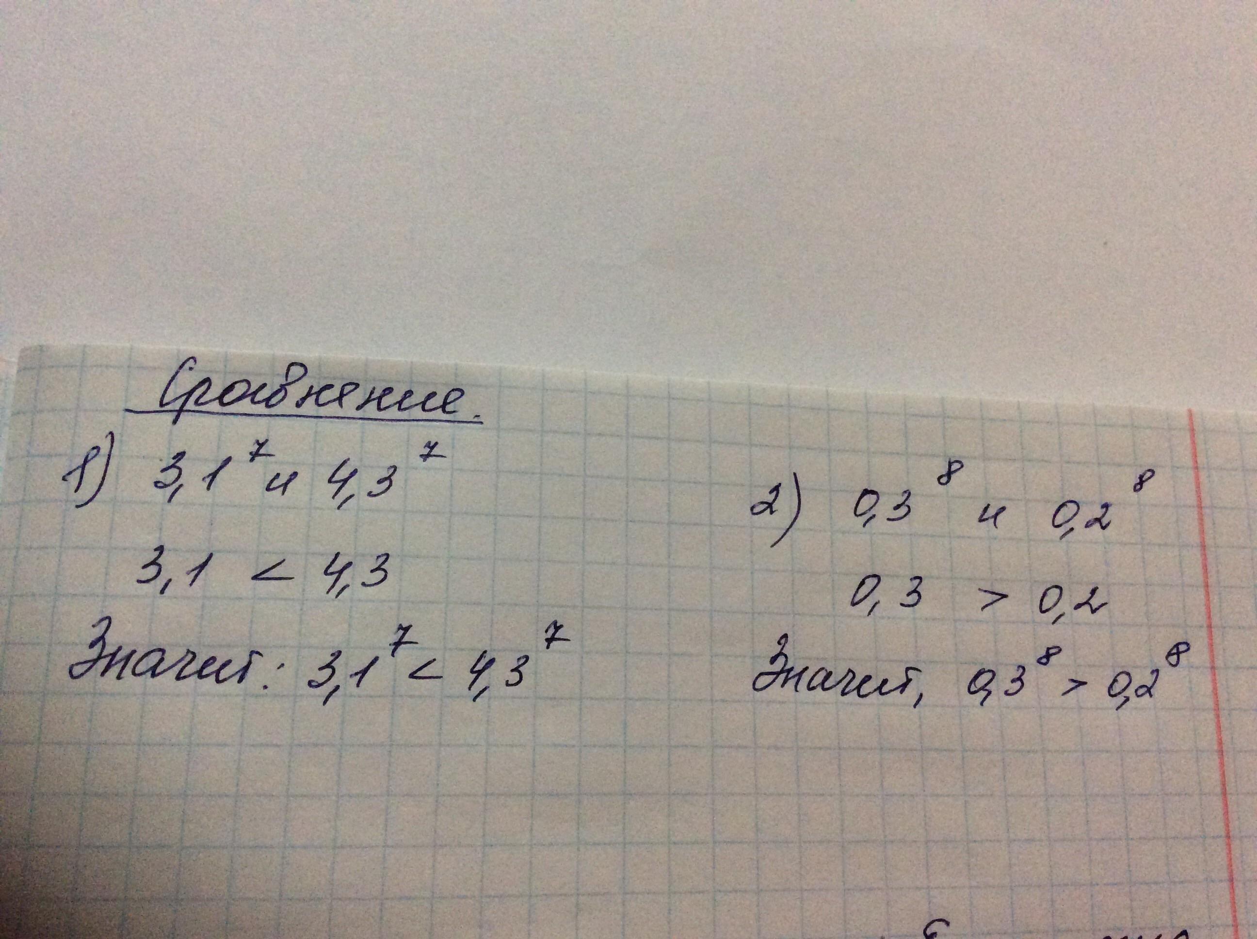 сравнение чисел: если степень одинаковые, то сравниваем основания.