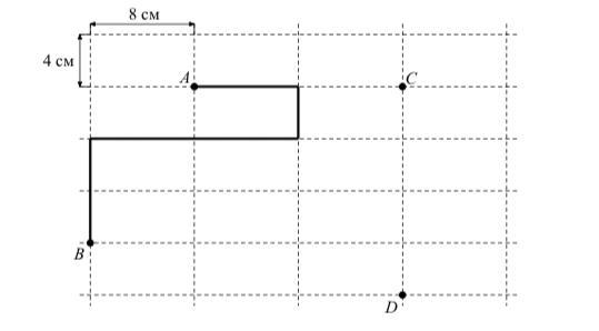 Лист бумаги расчерчен на прямоугольники со сторонами 8 см и 4 см. От точки А к точке В
