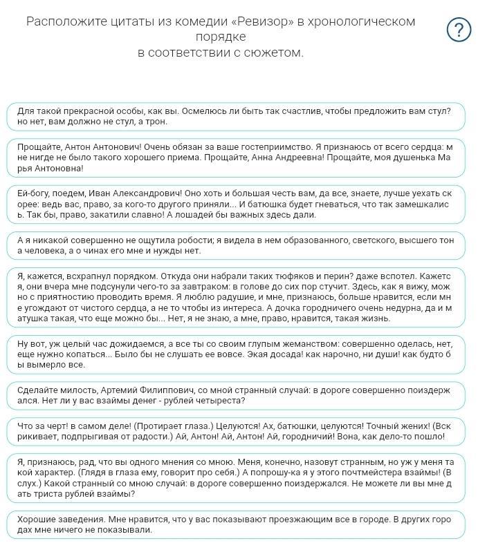 Расположите цитаты из комедии «Ревизор» в хронологическом порядке
