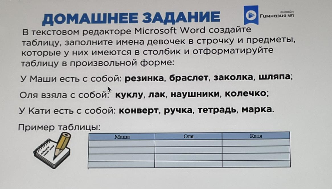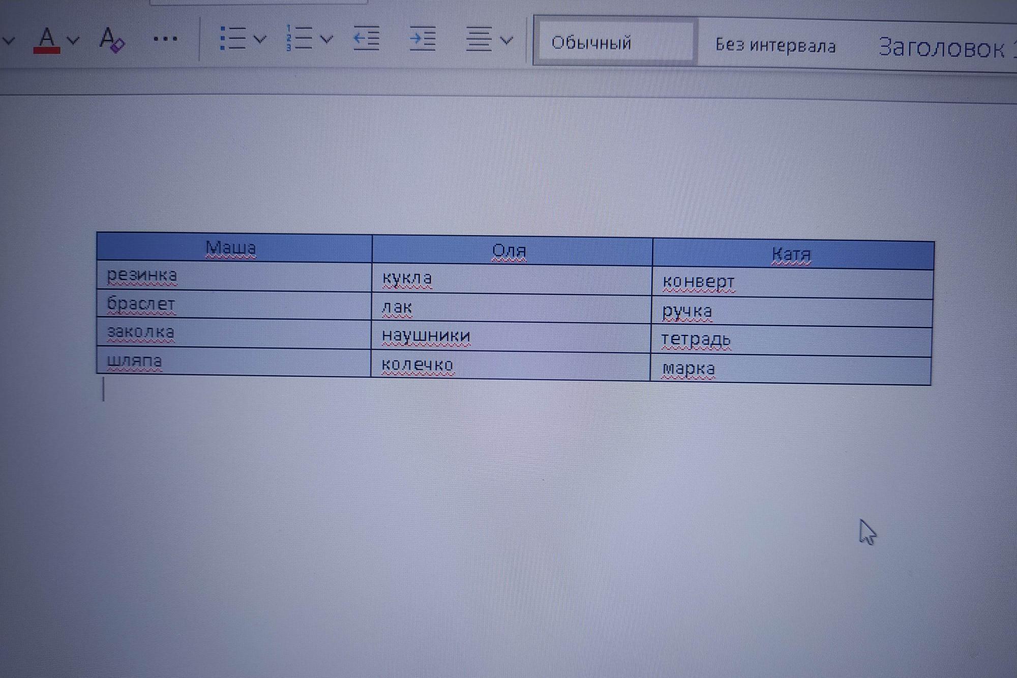 и вписывай имена в верхней строке (Маша, Оля, Катя, а ниже пиши под каждым именем то, что им надо, не поняла, какой вопрос интересунт, поэтому написала все