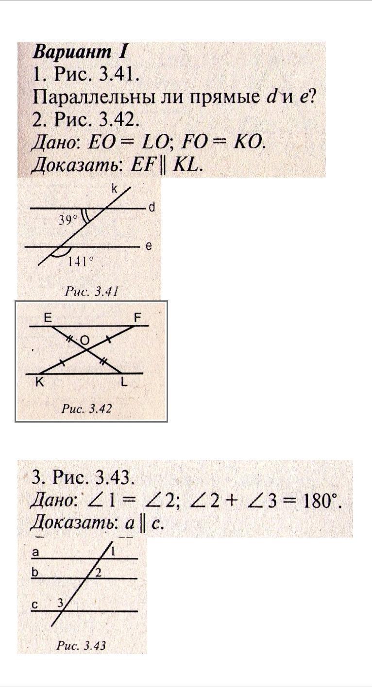 1. Углы прилегающие к одной и той же прямой с разных сторон и образуют угол относительно параллельных прямых, вместе равны 180 градусам. Так как мы видим два угла при прямой и вместе они равны 180-ти градусам, то прямые параллельны.