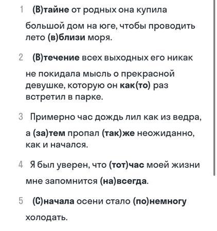 «Определи предложение, в котором оба выделенных слова пишутся слитно»