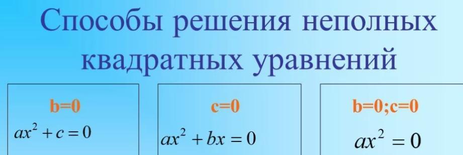 неполное квадратное уравнение - это когда хотя бы один из коэффициентов равен нулю, кроме "а"