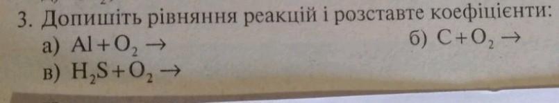 б) 2 H2S + 3 O2 --> 2 SO2 + 2 H2O