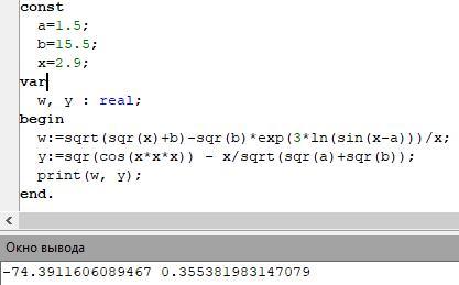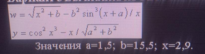 y:=sqr(cos(x*x*x)) - x/sqrt(sqr(a)+sqr(b));