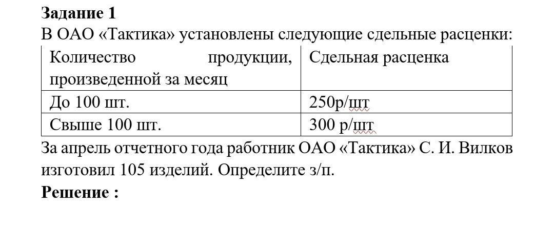 Т. К он изготовил свыше 100 , то одно изделие стоит 300 рублей . Всего изделий изготовлено 105 , значит мы должны умножить 300 на 105